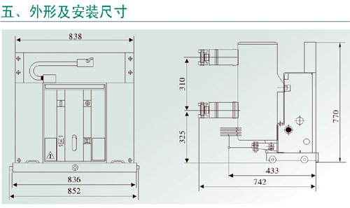该断路器采用操动机构与断路器本体一体式设计,既可做为固定安装单元,也可配有专用推进机构,组成手车单元作用。